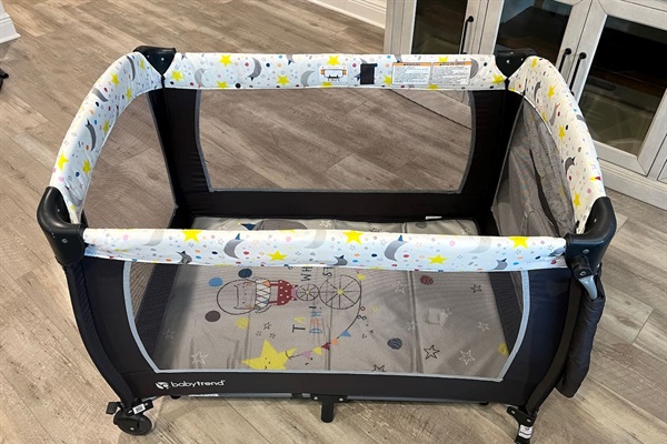 Inside the gated dedicated kid's playroom, which is a converted closet.